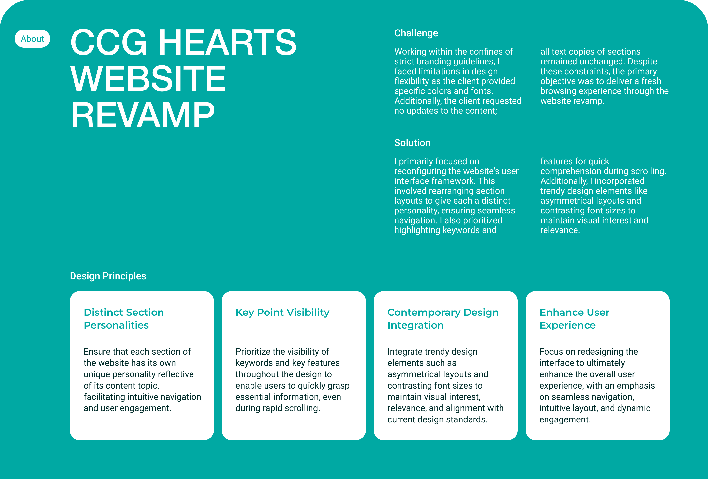 The goal of the CCG Hearts website revamp was to modernize and enhance the user interface of the existing membership loyalty program while strictly adhering to Chinachem Group’s branding guidelines. The project focused on improving visual appeal and navigation without altering the original content, aiming to boost user engagement and streamline information access across multiple devices, thereby elevating the overall user experience and reinforcing brand loyalty.