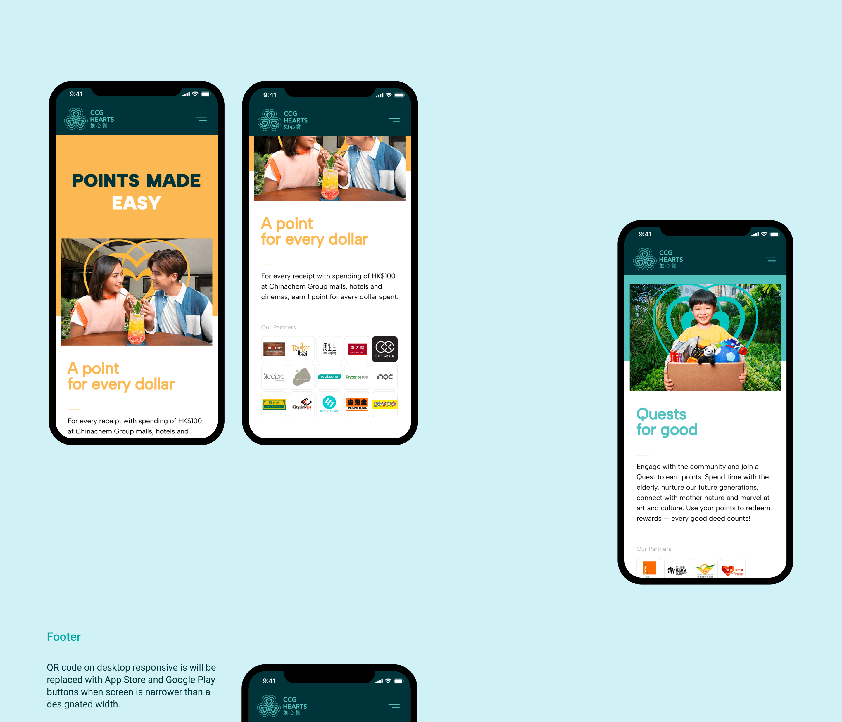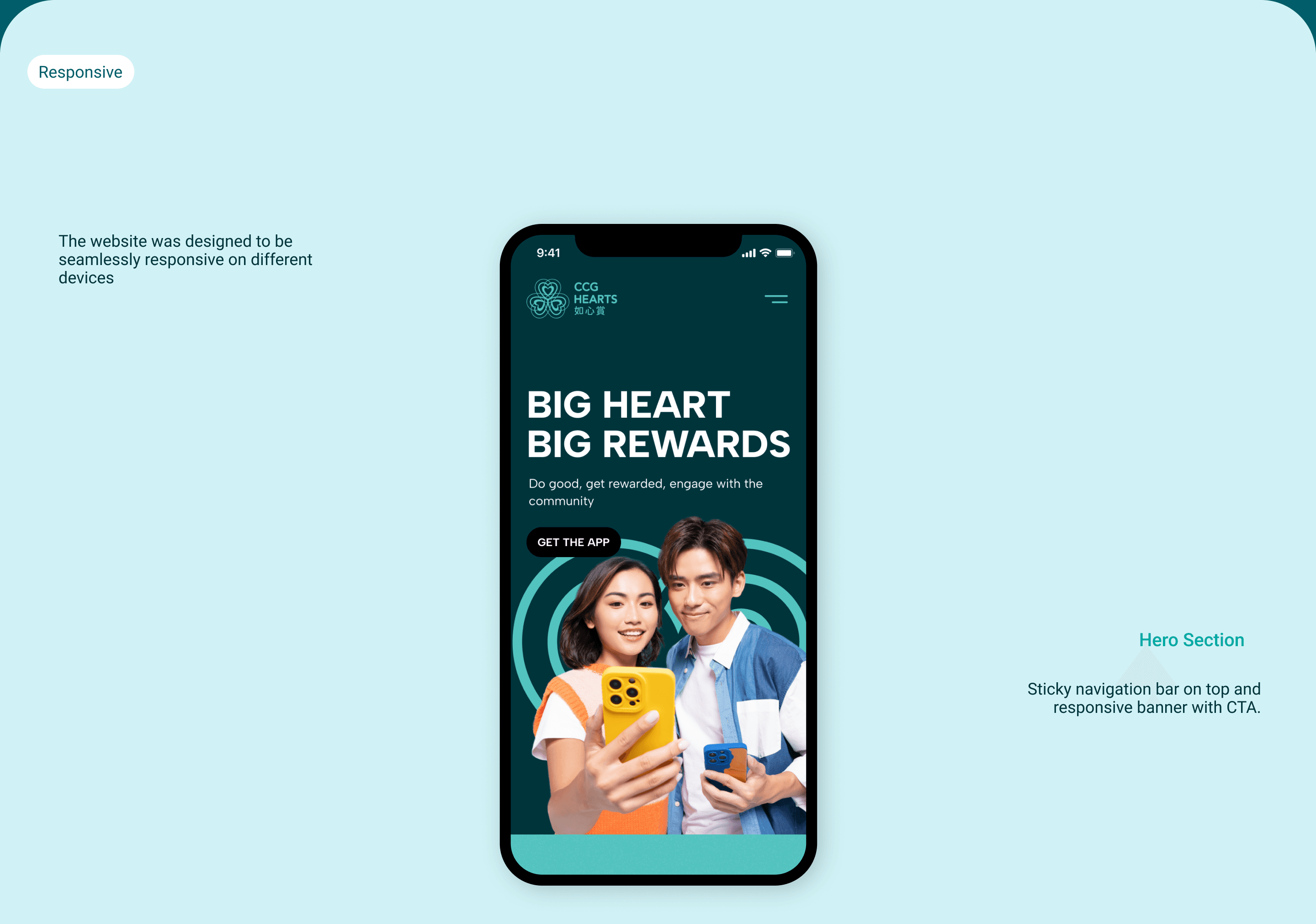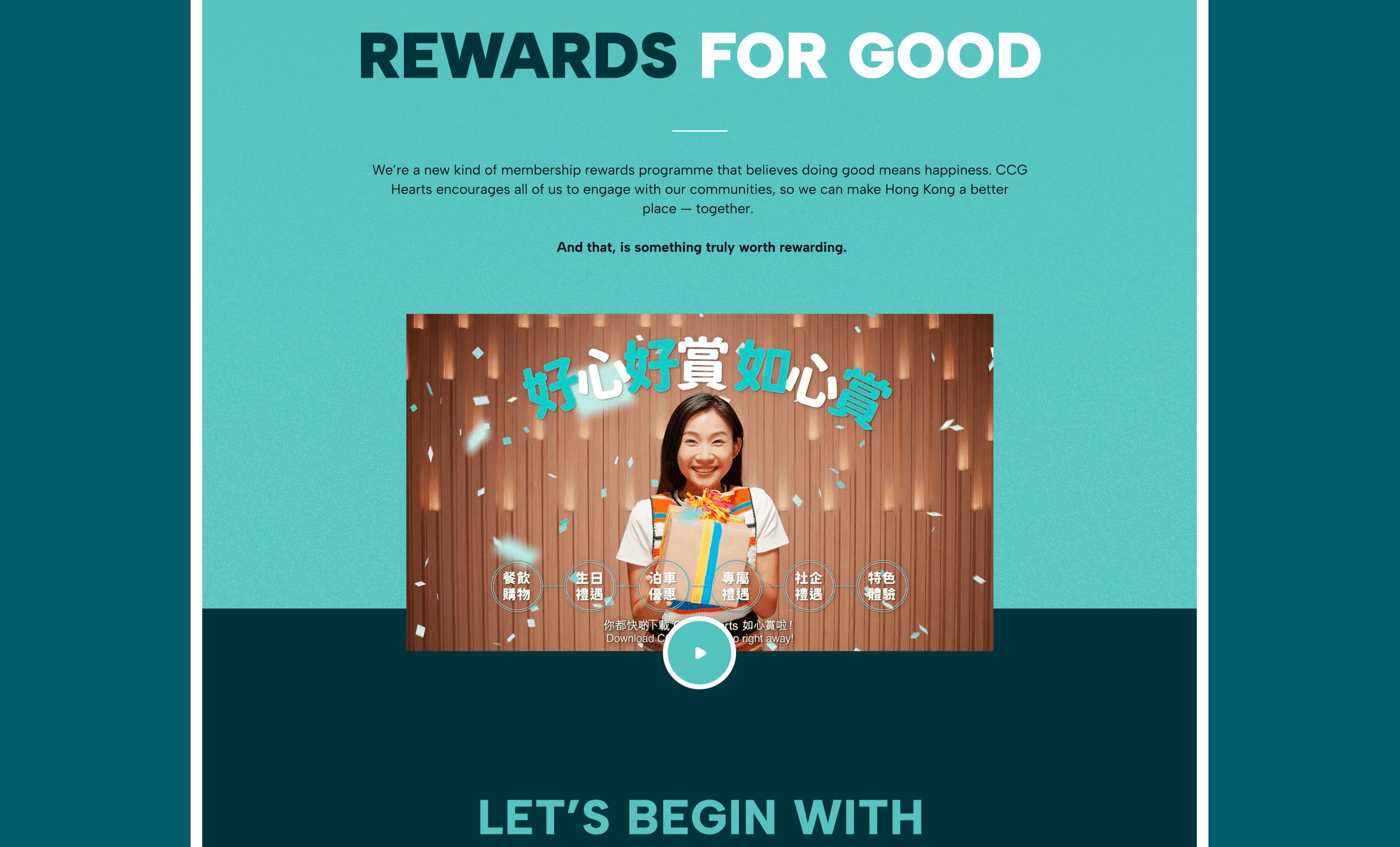 Chinachem Group, a leading property developer in Hong Kong since 1960, actively contributes to society by focusing on the ‘Triple Bottom Line’—benefitting people, community prosperity, and planet preservation. In line with this mission, the CCG Hearts membership loyalty program was introduced to revive the spirit of kindness and pioneer a new form of earning, which rewards giving. The project involved a responsive revamp of the CCG Hearts website to enhance user experience and align the platform with modern design standards.