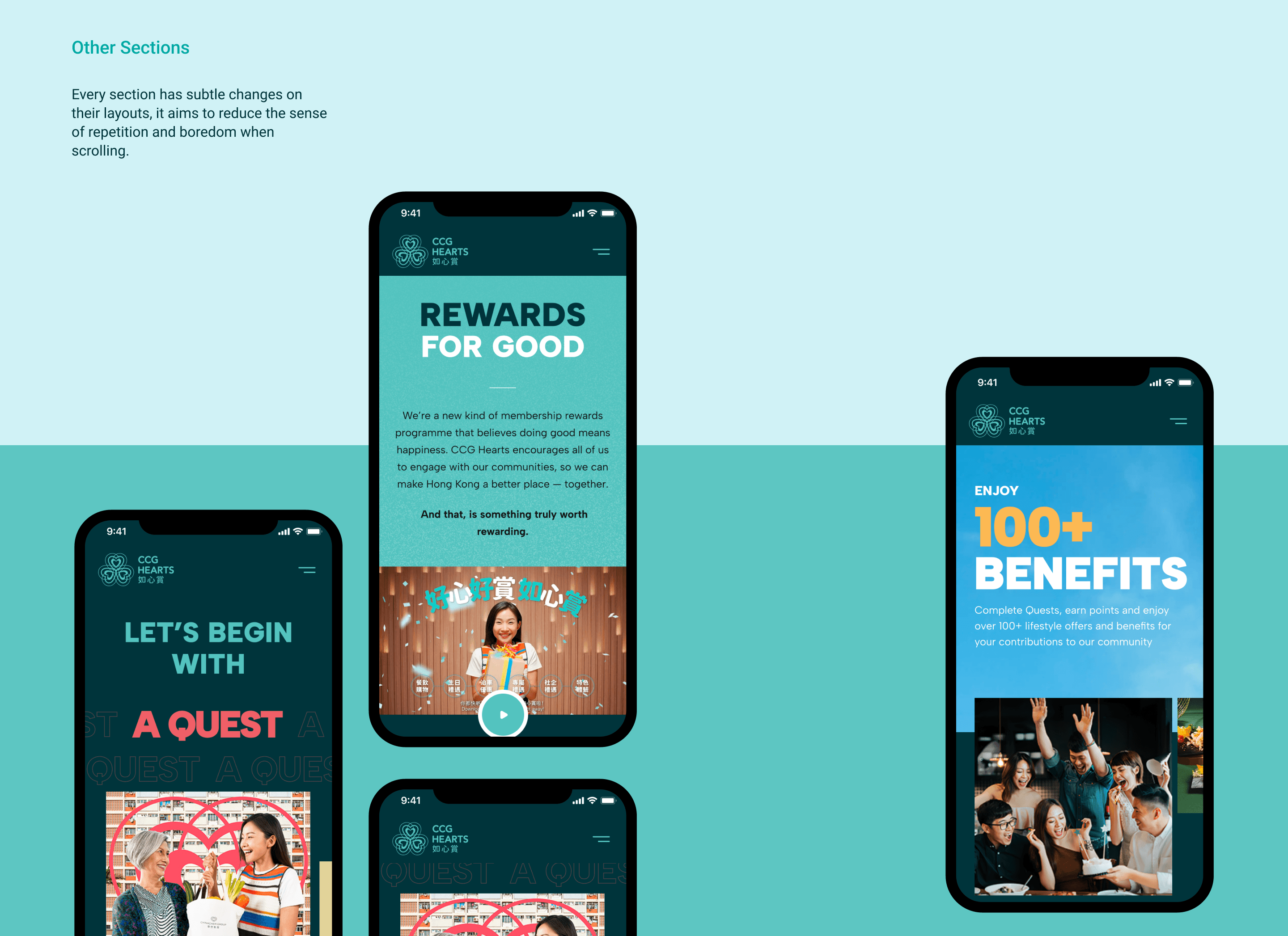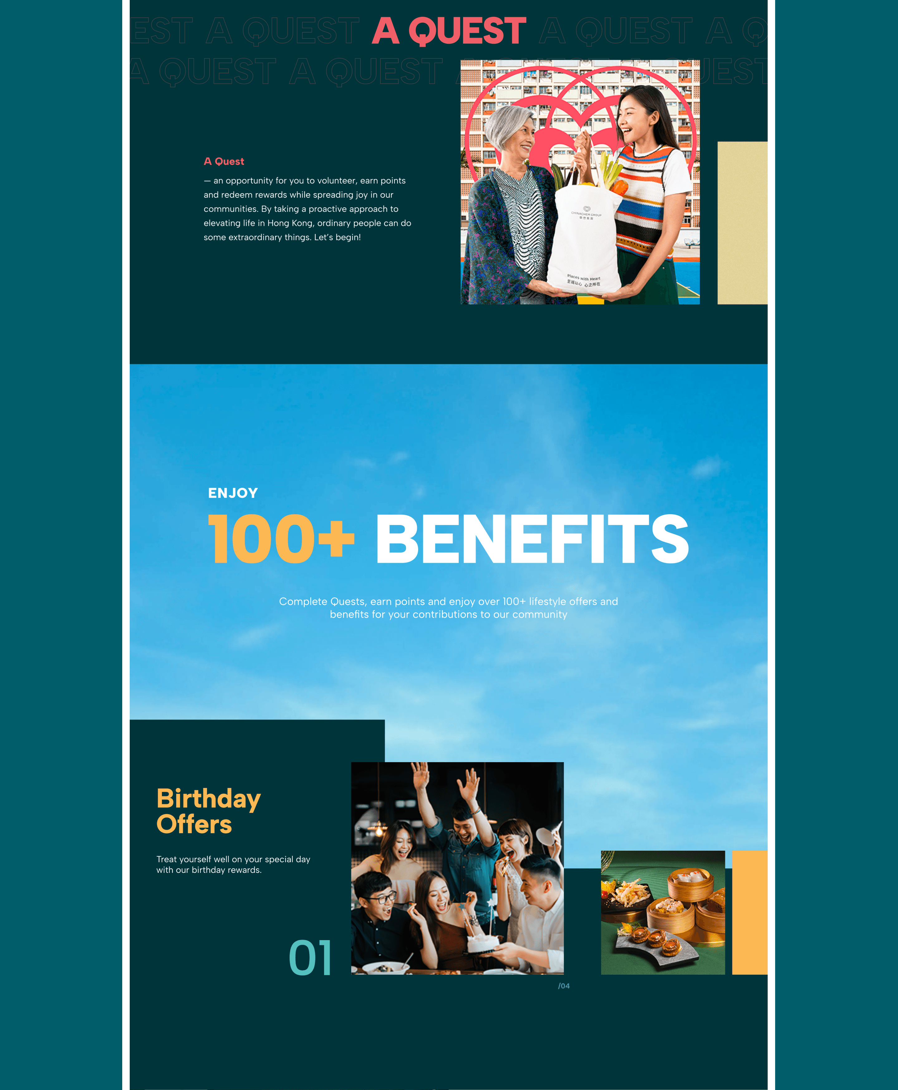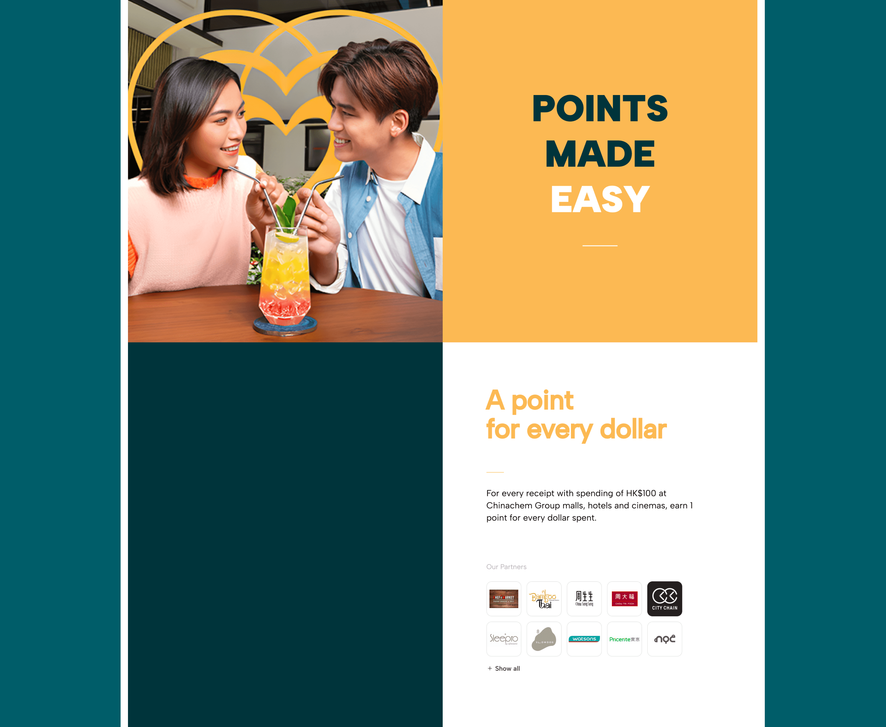 Chinachem Group, a leading property developer in Hong Kong since 1960, actively contributes to society by focusing on the ‘Triple Bottom Line’—benefitting people, community prosperity, and planet preservation. In line with this mission, the CCG Hearts membership loyalty program was introduced to revive the spirit of kindness and pioneer a new form of earning, which rewards giving. The project involved a responsive revamp of the CCG Hearts website to enhance user experience and align the platform with modern design standards.