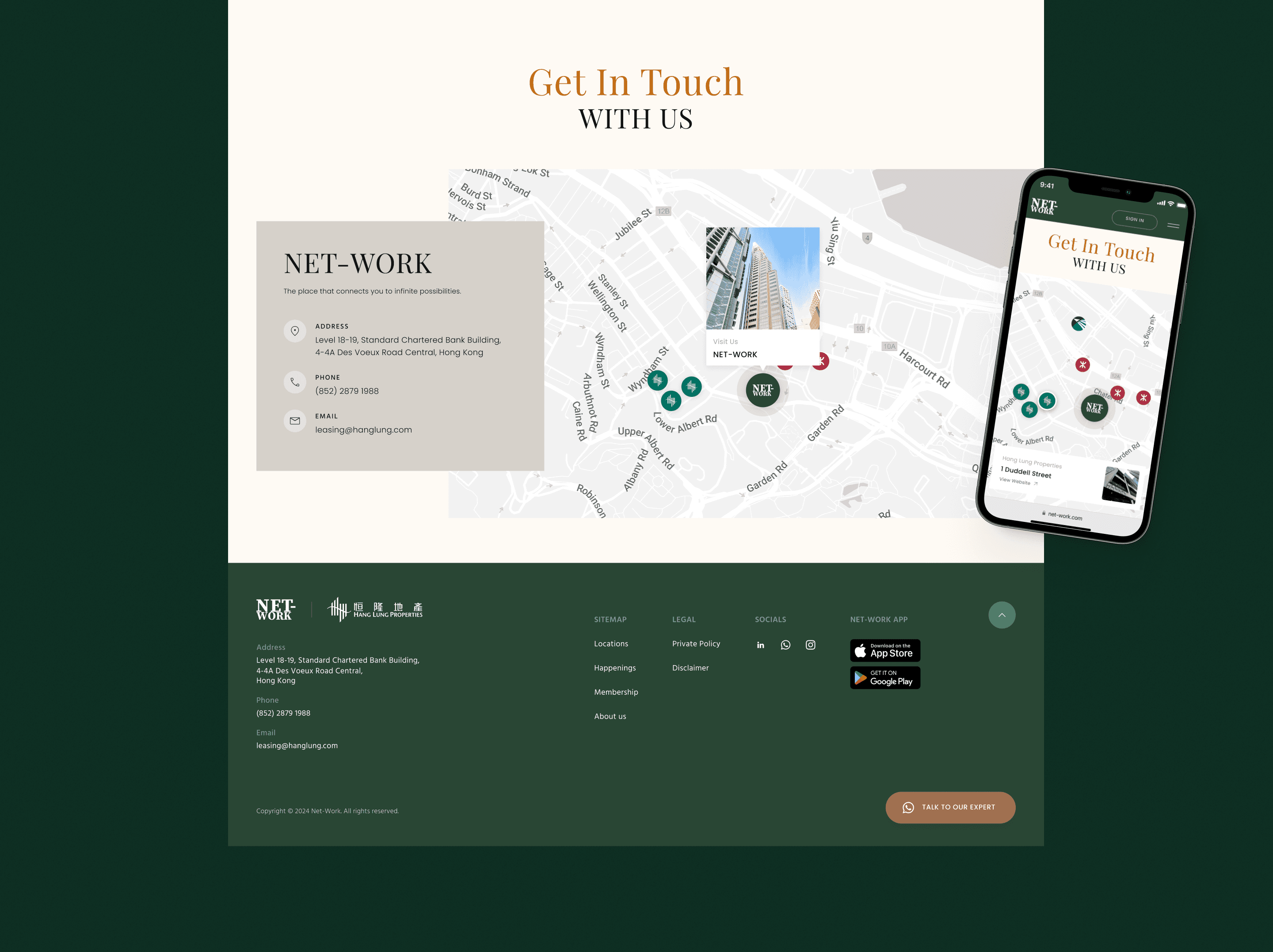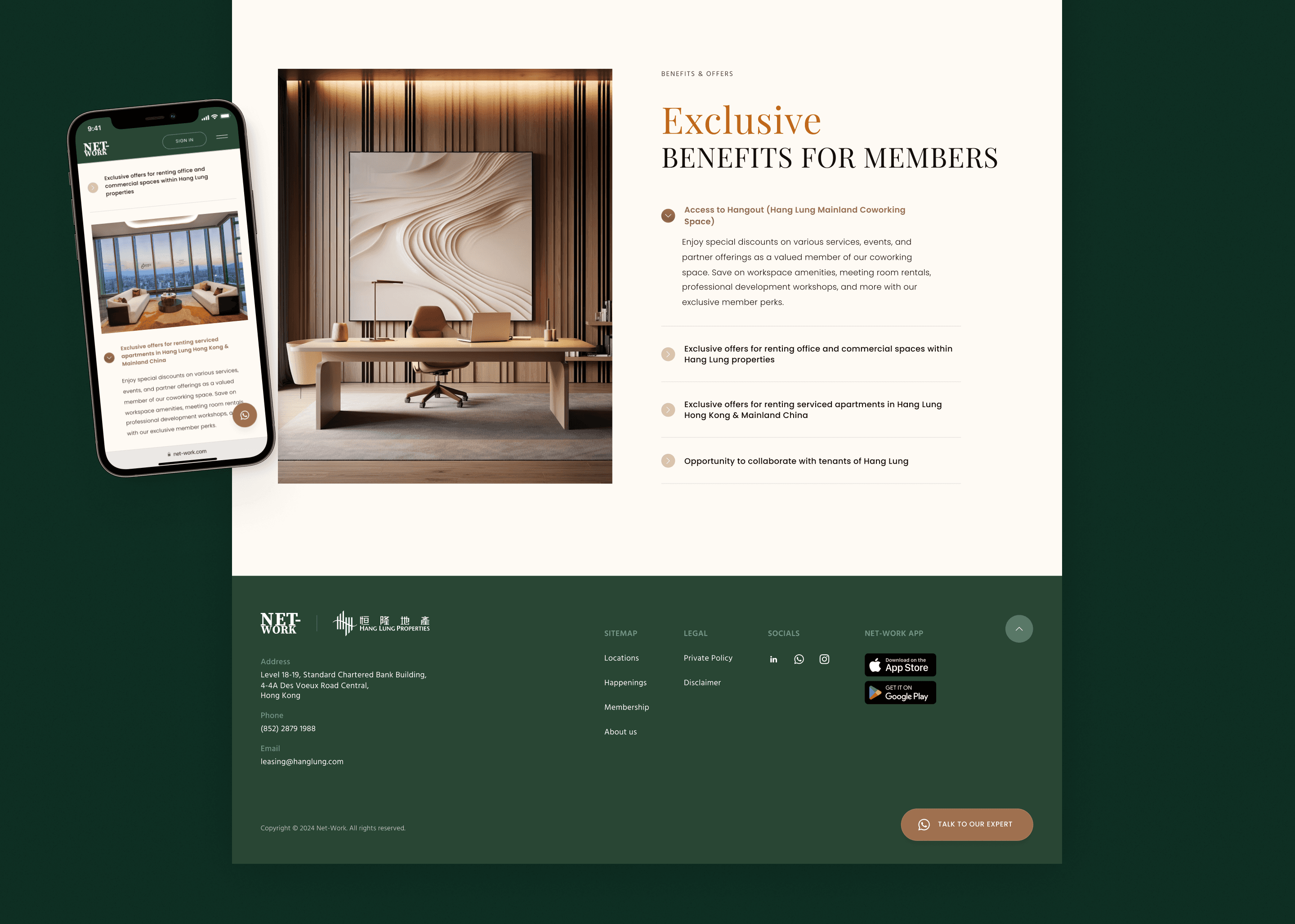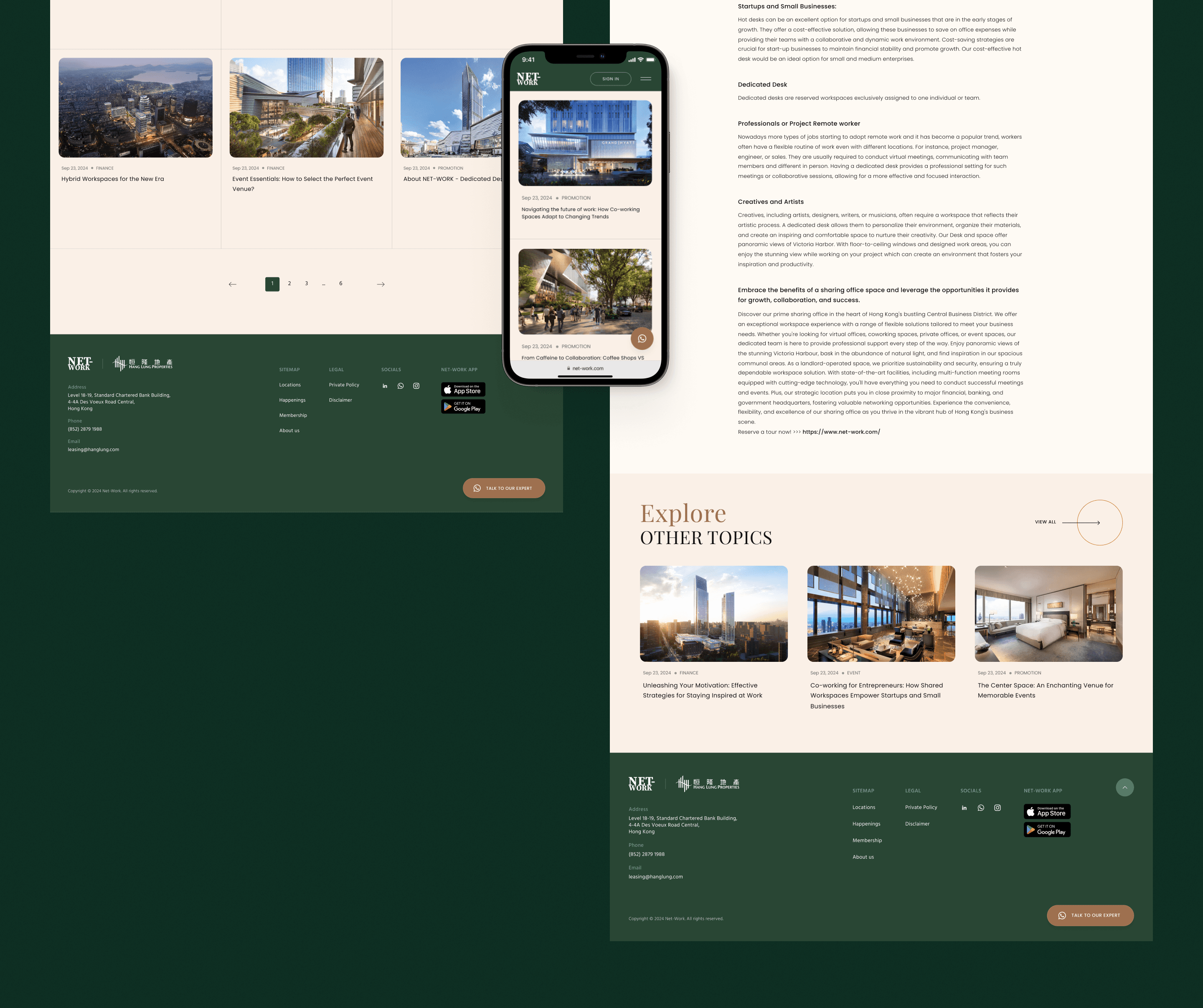 NET-WORK is a new coworking space initiative by Hang Lung Properties, situated in the prime business district of Central, Hong Kong. The project aimed to launch a responsive website that would attract potential members and establish NET-WORK as a premier choice in Hong Kong’s competitive coworking landscape.