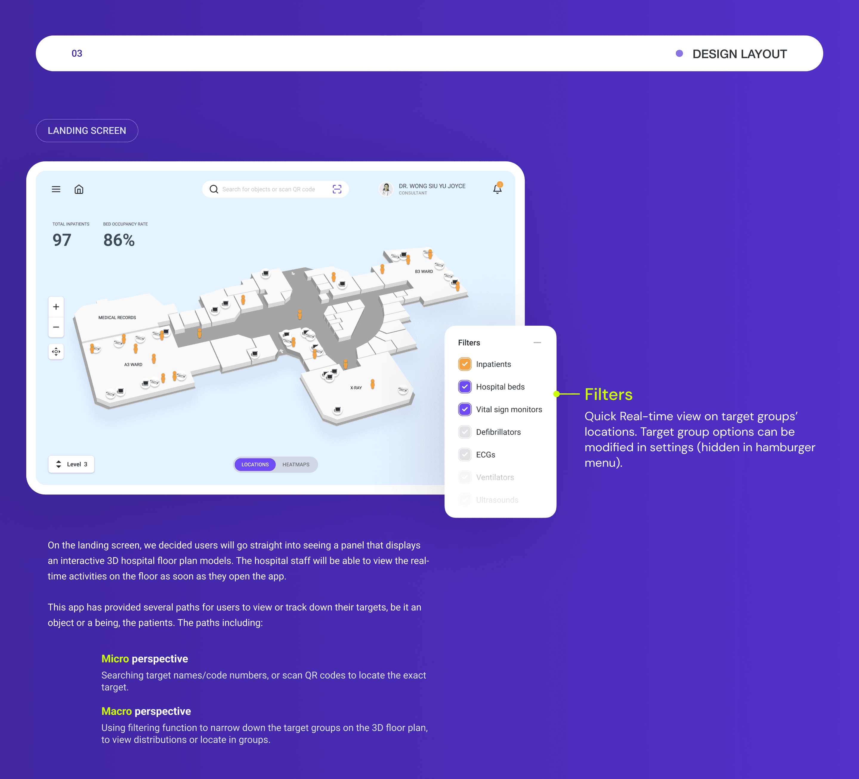 The Department of Computer Science at Hong Kong Baptist University (HKBU CSD) envisioned developing a Real-Time Tracking & Locating System (RTLS) for their hospital. This proposed system was designed to enhance operational efficiency and safety by enabling accurate, real-time tracking of medical assets and personnel. The pitch included a detailed plan for an application that would allow hospital staff to access vital locational information, monitor indoor movement, and receive system alerts, thereby aiming to streamline operations and improve patient care.