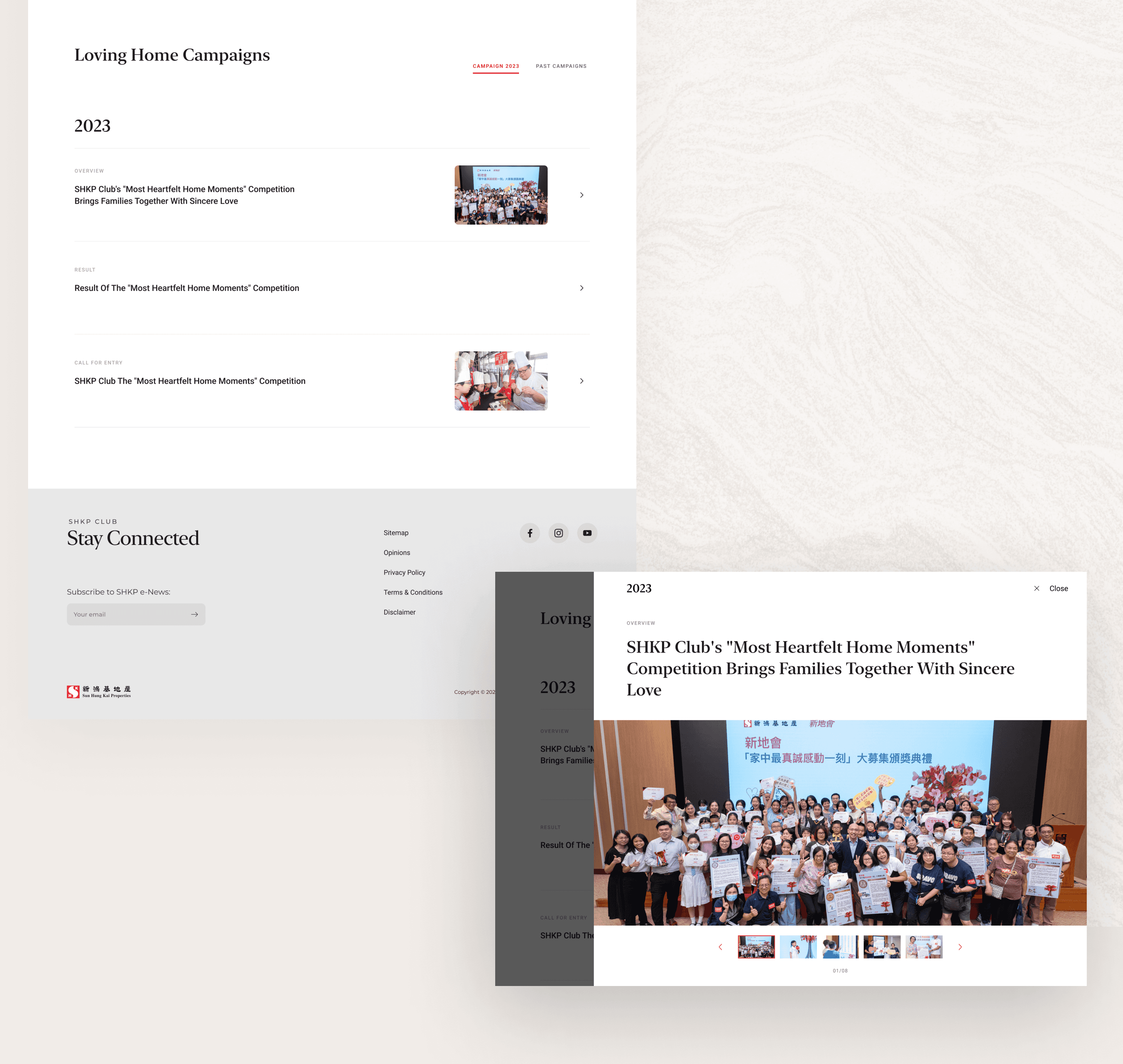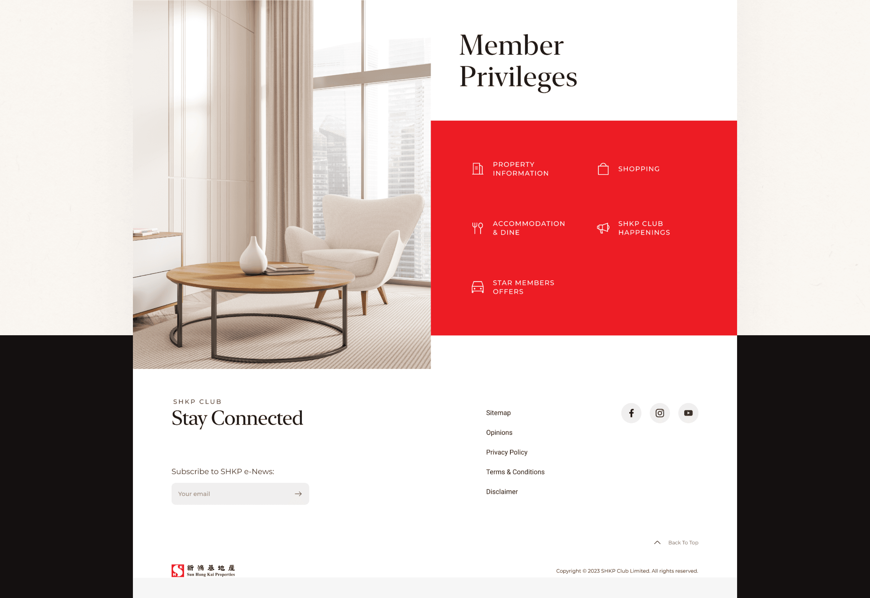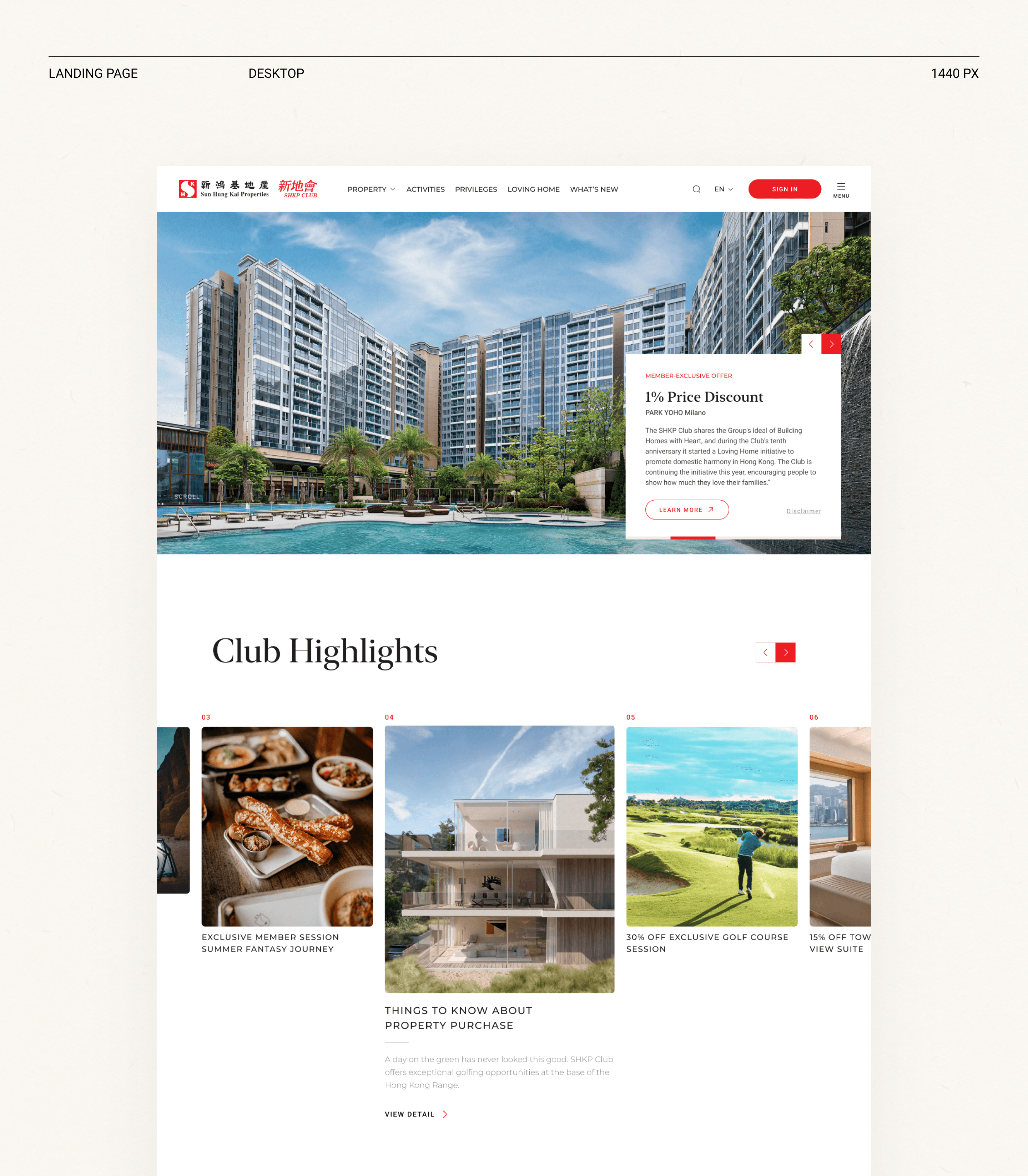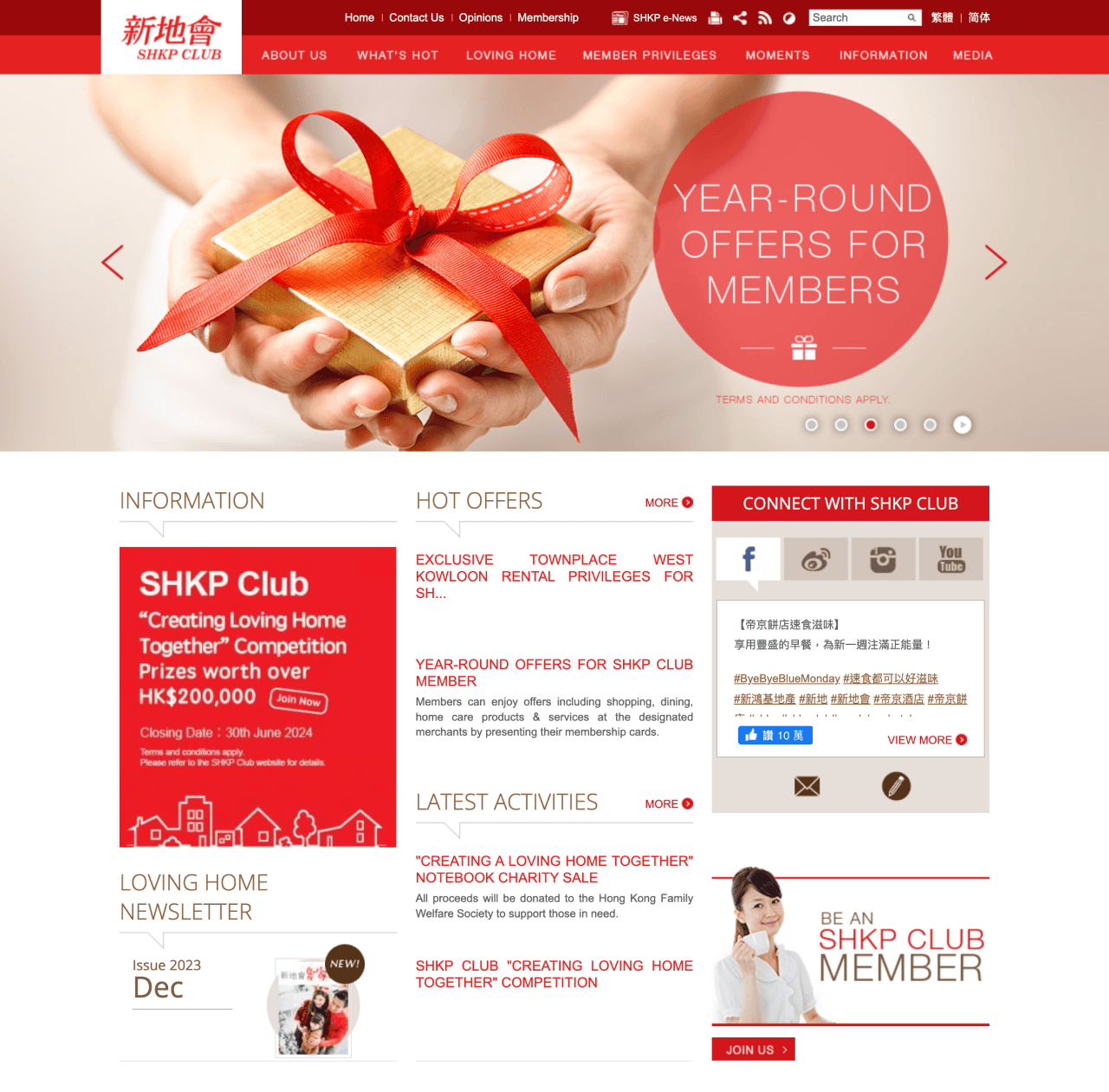 Since the SHKP Club website was launched a decade ago, it is inevitably that the design style is outdated. Not only that, the website structure was not well planned, the a messy sitemap and clutter in content, therefore result in a poor user experience. As a result, this project aimed to revamp the club website to drive engagement by enhancing functionality and user experience, as well as digitalising data collection in order to extend business potentials and membership competency.