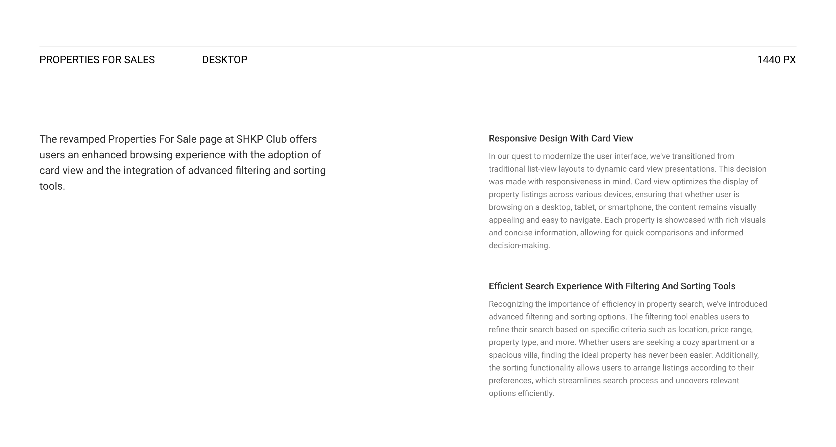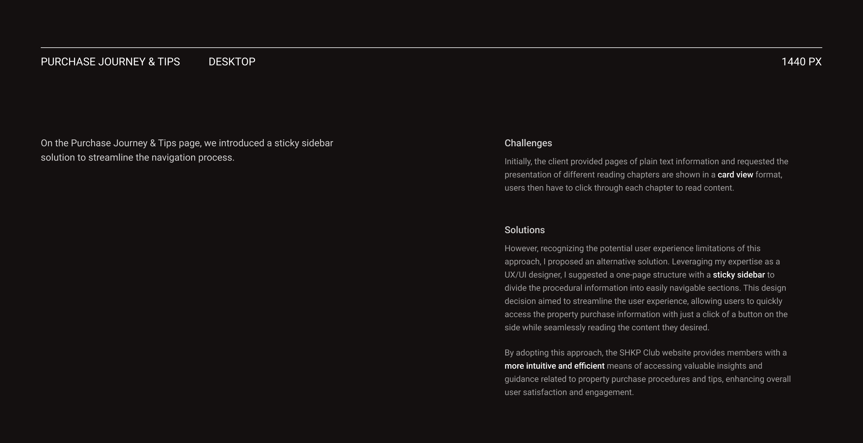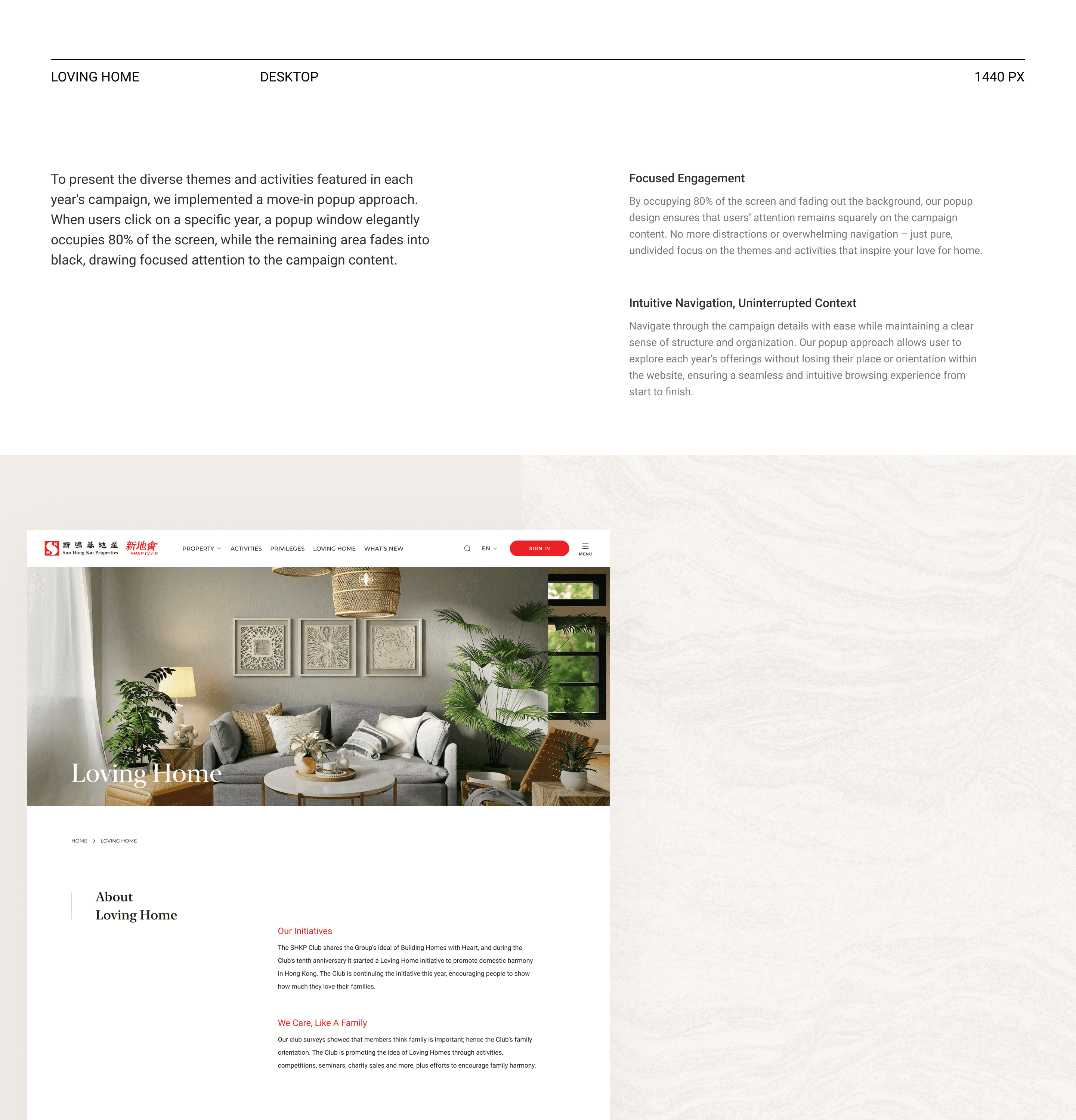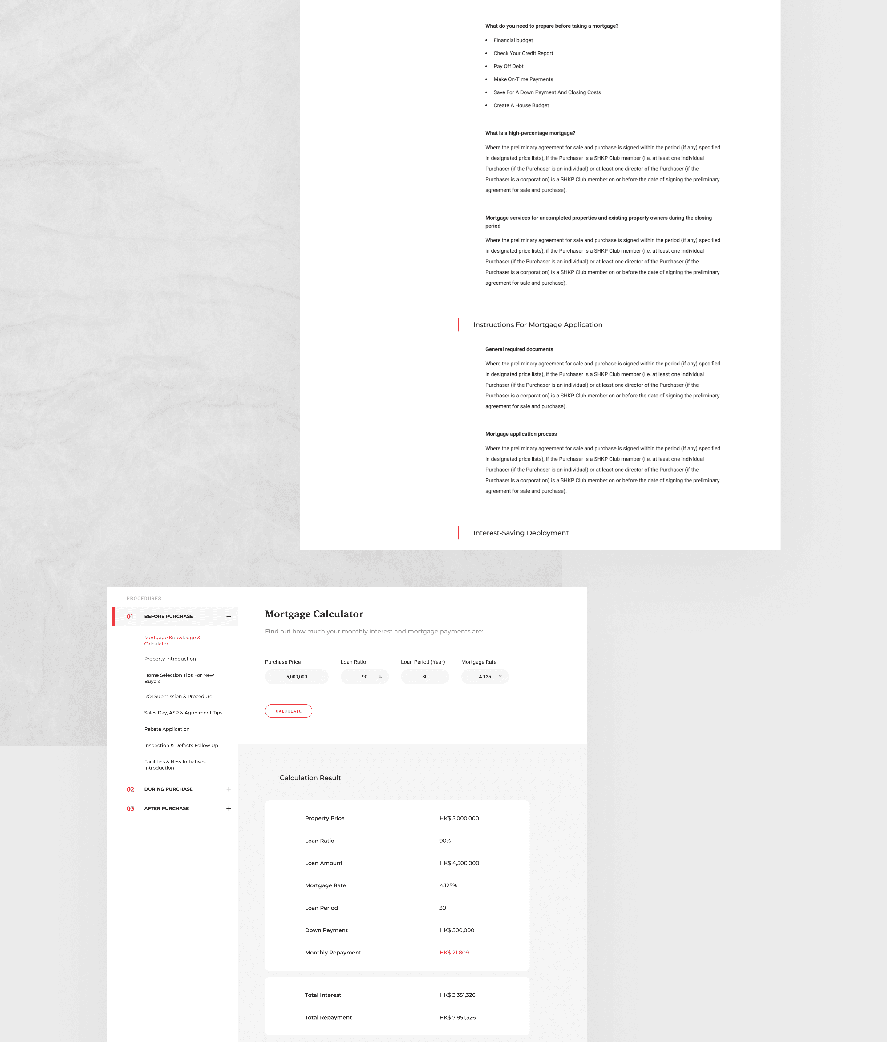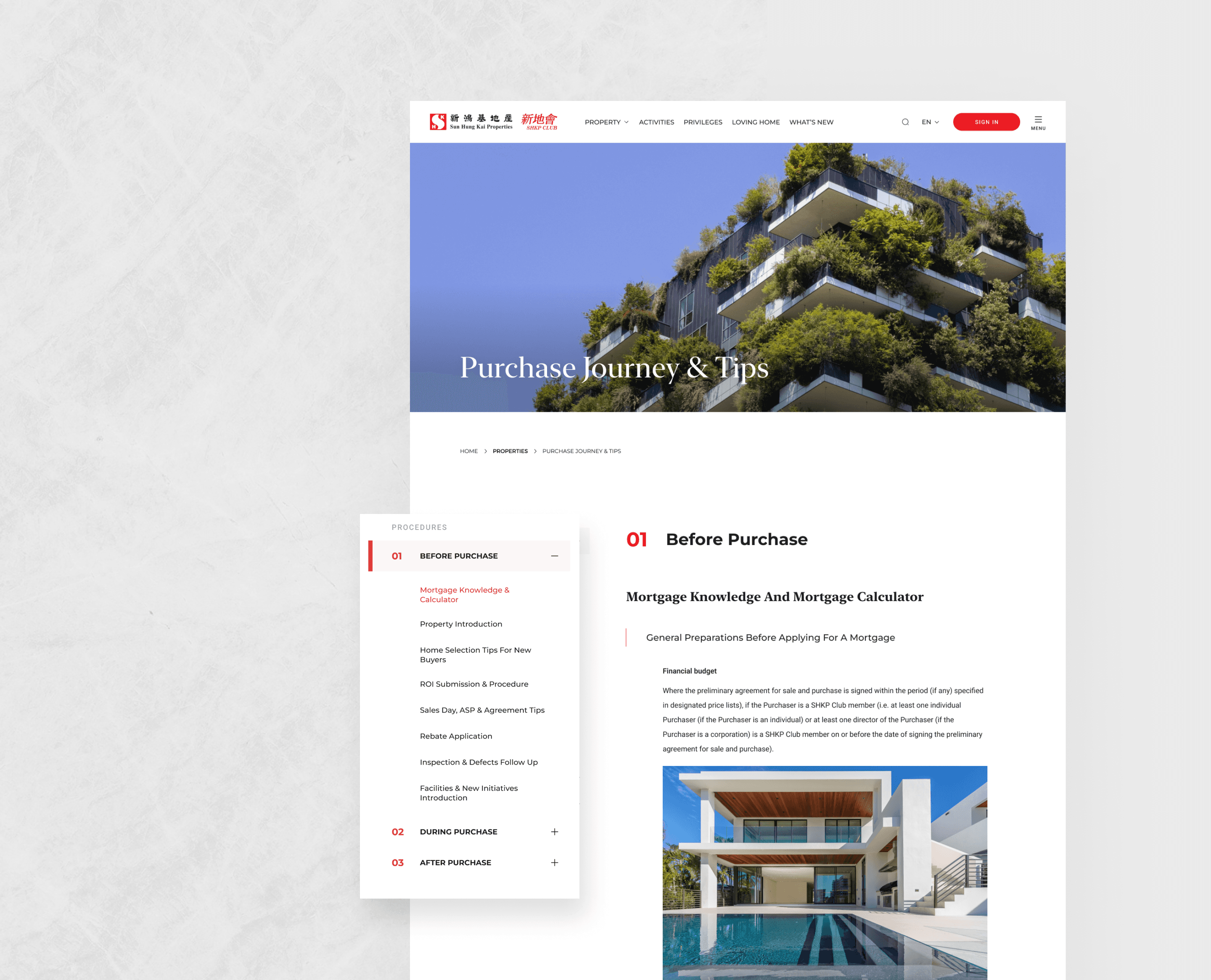 Since the SHKP Club website was launched a decade ago, it is inevitably that the design style is outdated. Not only that, the website structure was not well planned, the a messy sitemap and clutter in content, therefore result in a poor user experience. As a result, this project aimed to revamp the club website to drive engagement by enhancing functionality and user experience, as well as digitalising data collection in order to extend business potentials and membership competency.
